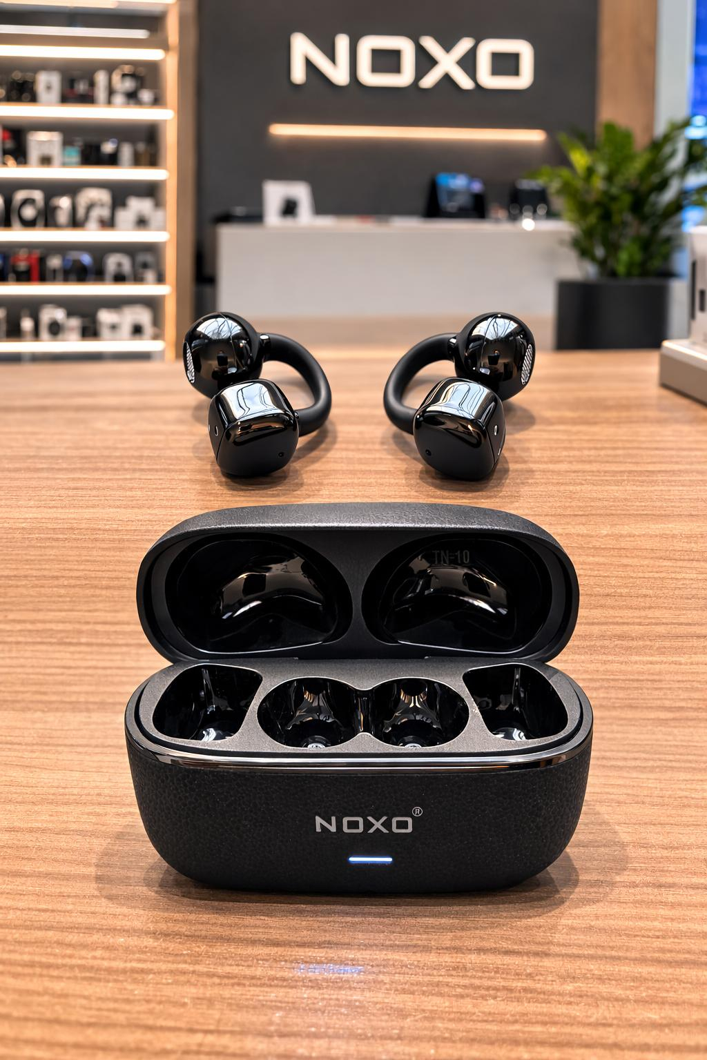 Descopera noile casti wireless NOXO TN-10 Earclip OWS, create pentru confort, libertate de miscare si sunet premium. Designul inovator Open-Ear Earclip iti permite sa asculti muzica sau sa vorbesti la telefon fara sa iti blochezi complet urechea, oferind o experienta audio moderna si confortabila.