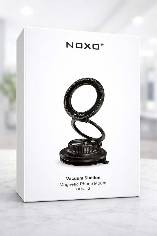Suport telefon magnetic NOXO HDN-12 cu ventuză vacuum și rotire 360°, compatibil cu telefoane 4.7–6.7 inch, ideal pentru mașină, birou sau acasă.