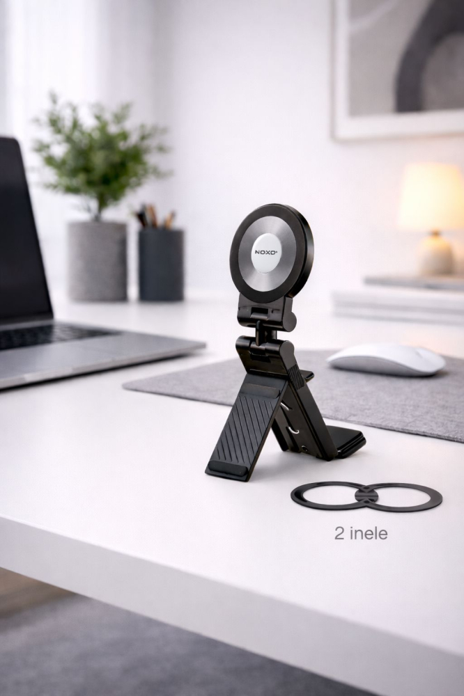 Descopera suportul magnetic pliabil pentru telefon NOXO DHN-3, un accesoriu multifunctional creat pentru confort, mobilitate si stabilitate in orice situatie. Conceput pentru utilizare zilnica acasa, la birou sau in timpul calatoriilor, acest suport compact ofera o solutie practica pentru a tine telefonul in pozitia perfecta atunci cand lucrezi, urmaresti filme sau participi la apeluri video.